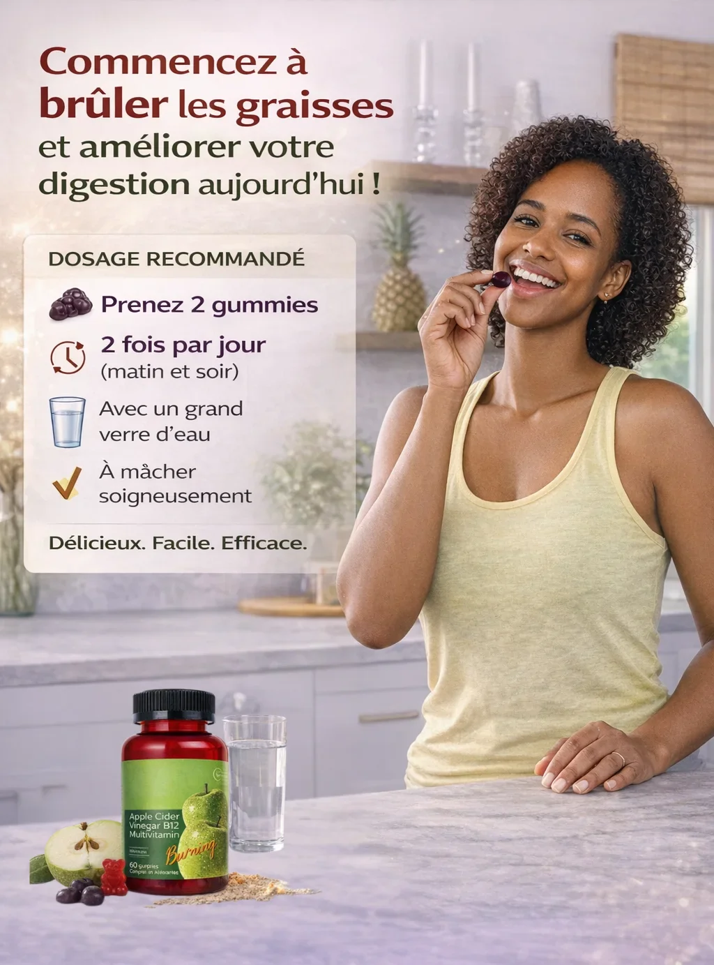 Ne laissez plus la graisse décider pour vous ! Passez à l’action dès aujourd’hui et commandez vos Bonbons Gélifiés au Vinaigre de Cidre de Pomme pour commencer à transformer votre silhouette naturellement et efficacement.