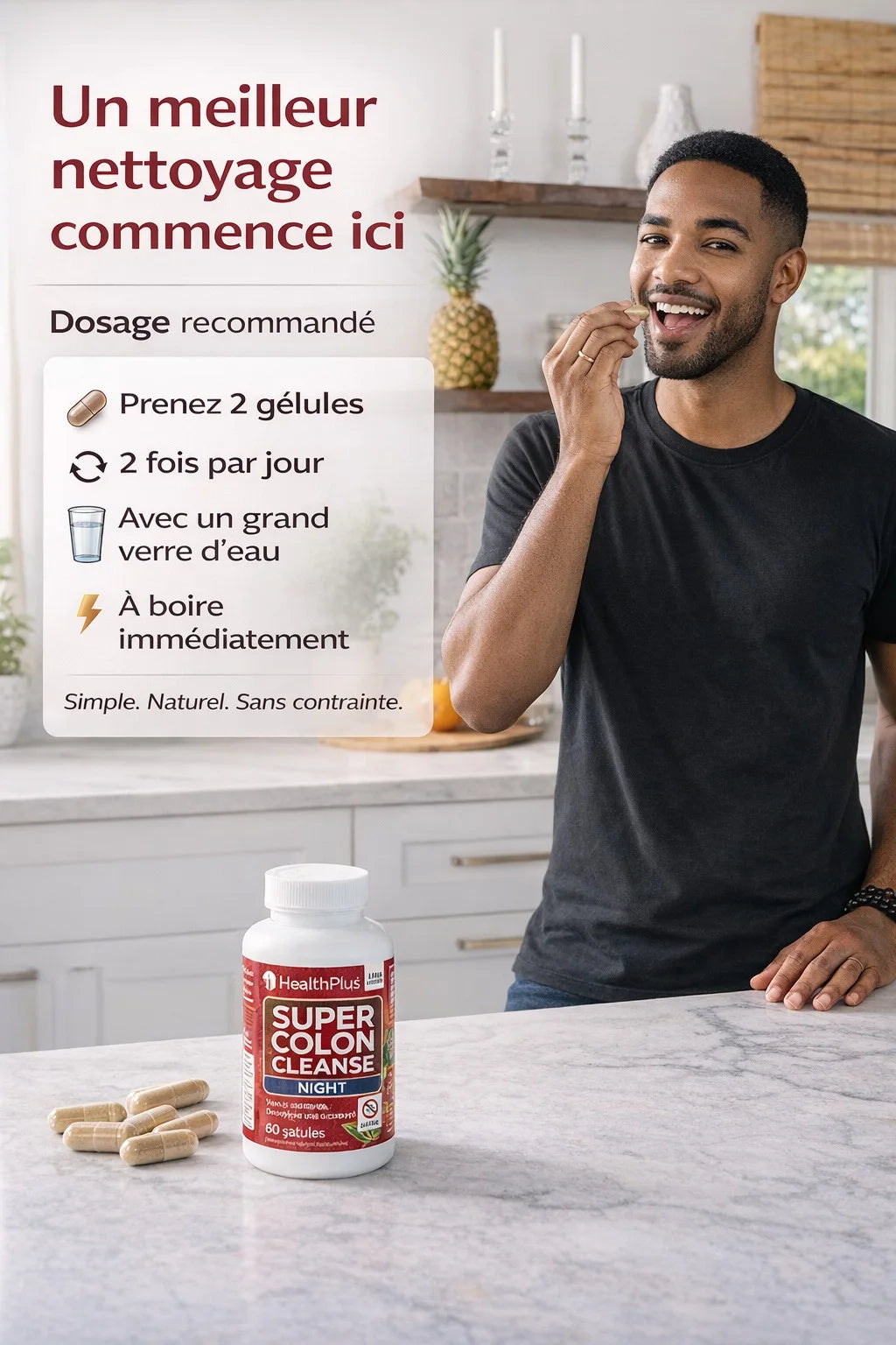 Vous sentez votre ventre lourd et ballonné après les repas ? 😣 Health Plus Super Nettoyage du Côlon aide à éliminer les toxines et à retrouver une sensation de légèreté immédiate !